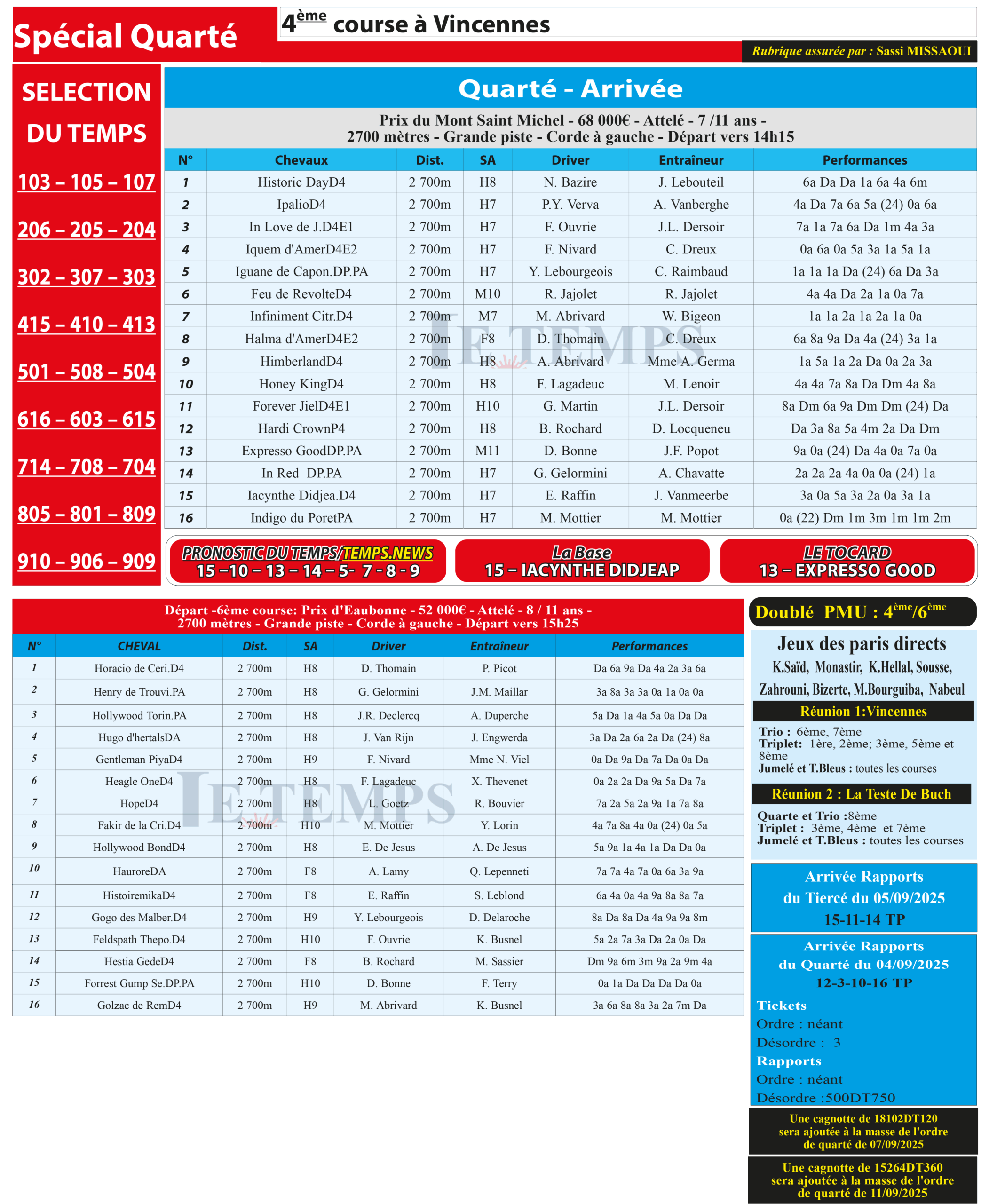 Accueil » Pronostic Quarté : Prix du Mont Saint Michel à Vincennes