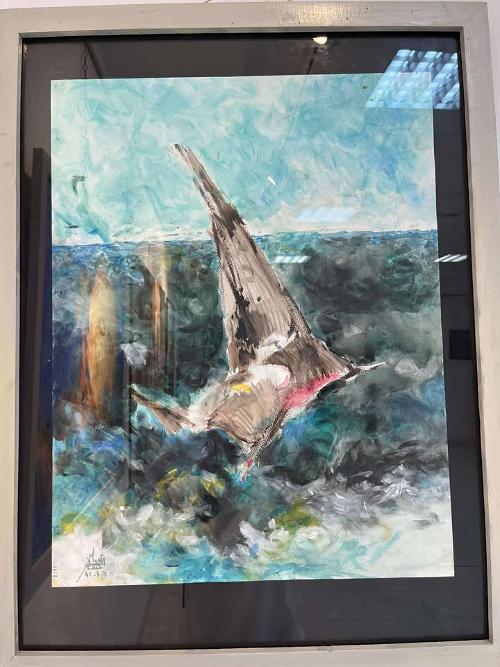 L’acrylique sur papier est une technique souvent utilisée par l’artiste. Cette approche permet une large gamme d’effets, combinant la flexibilité des acryliques avec les qualités délicates des méthodes aquarelles. l’artiste maîtrise aussi le genre de la peinture au graphite. De bonne facture pour la plupart, les toiles de Gassen dévoilent des thématiques variées notamment la nature, le vent, la mer, etc. D’autres rappellent l’exaltation et la frénésie de ses émotions, et le bouillonnement de ses sentiments.. Sa peinture très expressive. Une très belle œuvre qui accueille le visiteur. La différence de couleurs, bleu, brun, rouge, jaune traduit cette agitation ou ces imperturbables sentiments. Ghassan vogue sur les marines avec des teintes gris et or en grands aplats. De ses peintures lumineuses se dégagent beaucoup d’élégance et de subtilité dans le tracé et l’harmonie des couleurs. Le peintre slalome avec l’abstrait et le semi-abstrait. Ainsi, le visiteur est embarqué d’entrée, dans l’univers prolifique de l’artiste qui invite à une belle randonnée onirique, où les courants artistiques se croisent.