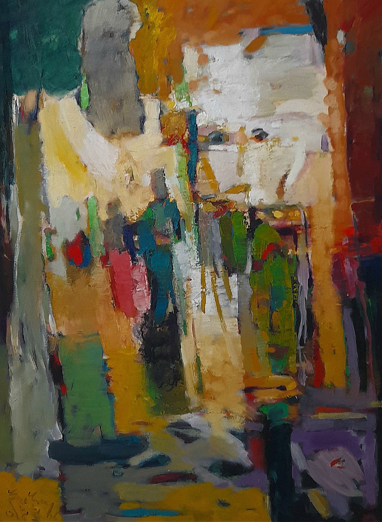 Bady Chouchène est l‘autre artiste qui s’intéresse à la Médina, sauf qu’il adopte un style semi abstrait. Chouchène nous présente des œuvres, toutes peintes à l’huile. Les œuvres qu’il expose montrent des scènes de la vie quotidienne et traditionnelle dans les villes et les villages de Tunisie. Etant toujours fidèle à son style artistique marqué par sa touche expressive et gestuelle et à sa palette chromatique très variée.