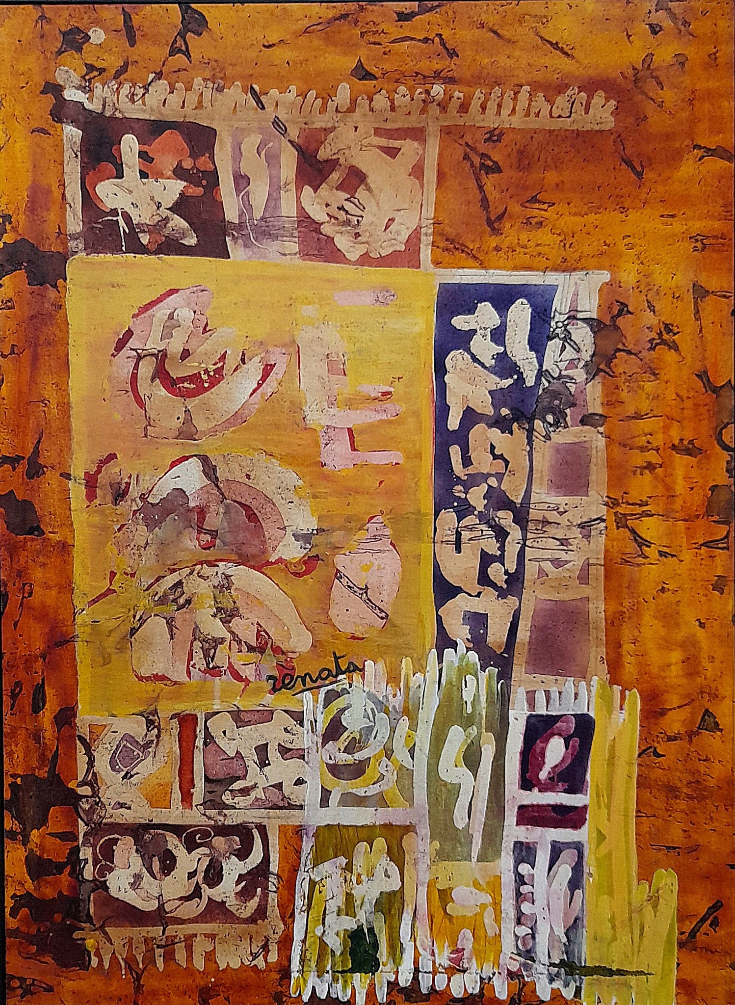Les cimaises de la galerie sont ornées par une mosaïque de 36 œuvres artistiques composées de peintures à huile, d’aquarelles, de dessins, de sculptures, de photographies. Une profusion de couleurs, de matières, de techniques et de lumières marquent les tableaux exposés, pleins de signes et de symboles. L’invitée de cette exposition est l’artiste italienne Rénata Dlimi, dont les œuvres sont des tapisseries artistique qui tournent autour l’environnement et de l’océan.