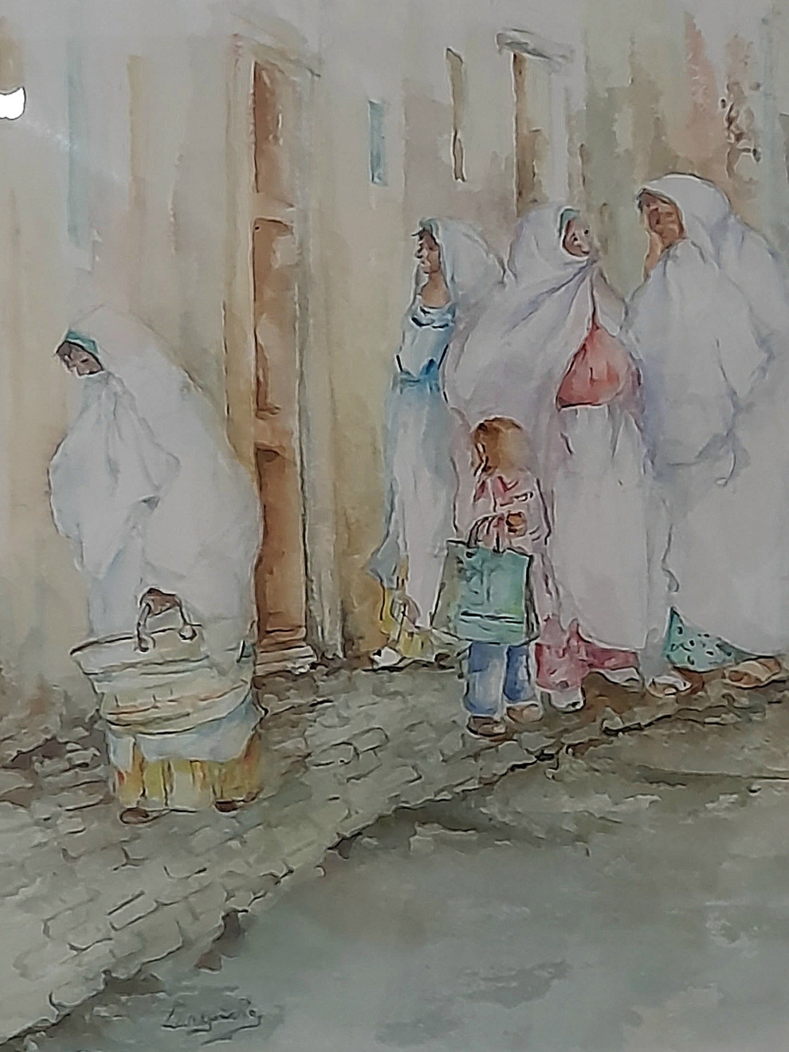 Zohra Larguèche nous propose à voir des tableaux faits à l’aquarelle, traitant de la Médina. Cette artiste passe pour l’une des rares artistes en Tunisie à s’intéresser à l’Aquarelle. L’on sait que cette technique constitue un art scriptural majeur, considéré comme la plus délicate des peintures à l’eau. Les passionnés de la peinture savent mieux que quiconque que ce n’est pas facile de mettre sur un papier des touches de couleurs qui, grâce à la magie de l’eau, créent une scène, une vue ou un univers très proche de la réalité. Le visiteur reconnait chez elle son attachement à la ville antique, à ses murs, ses ruelles, ses portes et fenêtres, ses habitants et leurs métiers, tous ces éléments qu’elle a su peindre minutieusement sans épargner aucun détail.