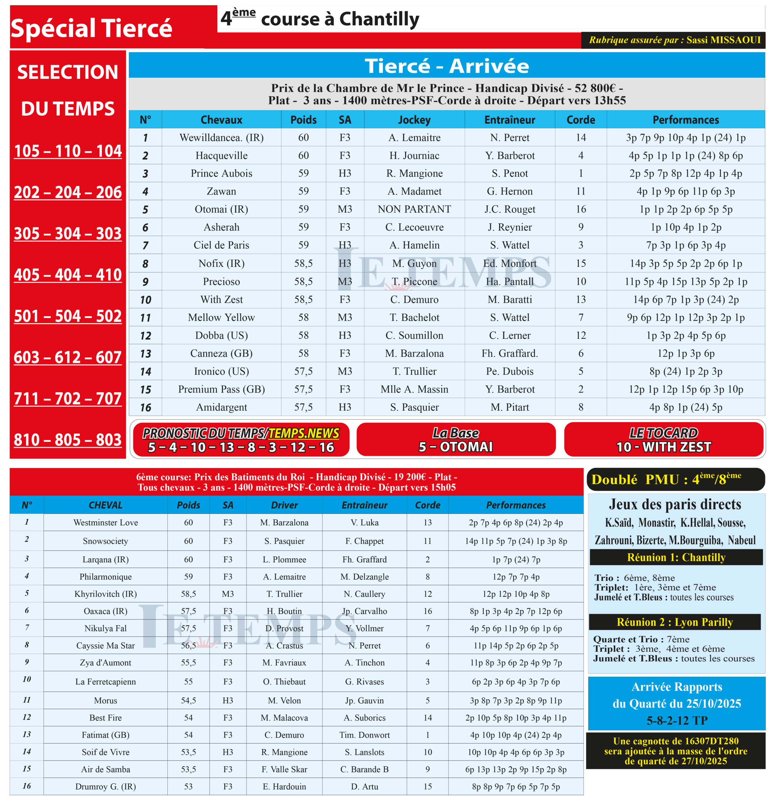 Partager Facebook Twitter LinkedIn Pinterest Email Notre spécial Tiercé d’aujourd’hui, 4ème course à Chantilly, donne notre pronostic du Temps/ Temps News avec le cheval n°5 Otomai étant la base, tandis que le Tocard est le cheval n°10 With Zest. PMU Turf