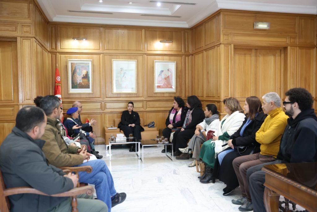 La ministre des Affaires culturelles, Amina Srarfi, a reçu hier, au siège du ministère, l’équipe de la pièce « Les Fugueuses » de Wafa Tabboubi, récemment lauréate du Prix Cheikh Dr Sultan bin Mohammed Al Qasimi de la meilleure œuvre théâtrale arabe, décerné dans le cadre du Festival du théâtre arabe, tenu du 10 au 16 janvier 2026 au Caire, en Egypte.