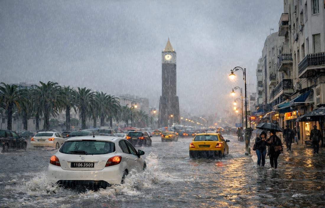 À noter que la carte de vigilance publiée par l’Institut national de la météorologie prévoit des pluies orageuses susceptibles d’être localement abondantes sur de courtes périodes (pouvant atteindre 40 mm), accompagnées de vents relativement forts en soirée, pouvant atteindre 80 km/h, notamment dans les zones ouvertes du gouvernorat de Tunis.