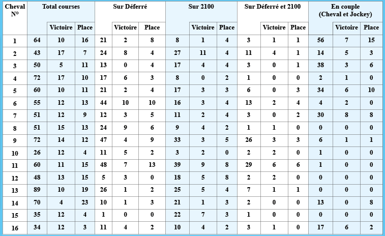 Le reste du jeu (16-7-6-1-5-4) : Jazzman (16) redoutable malgré son numéro malgréux, Jingle du Pont (7) déferré et prêt à briller, Idéal du Rocher (6) fidèle rendez-vous, Ibiscus Man (1) en pleine réhabilitation, Jango Vici (5) au top de son hiver et Happy Danica (4) idéale à la corde..