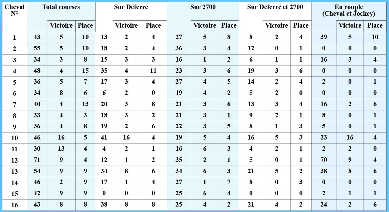Statistiques détaillées des performances –  Prix de Chateau-Gontier  (1er course à Vincennes), réalisées par letemps.news :
