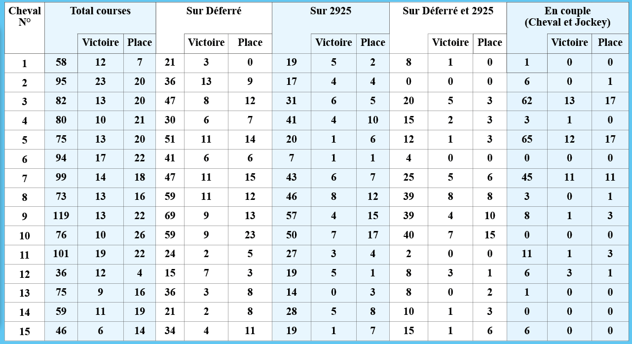Statistiques détaillées des performances – Prix Jules Roucayrol (1er course à Cagnes Sur Mer), réalisées par letemps.news :