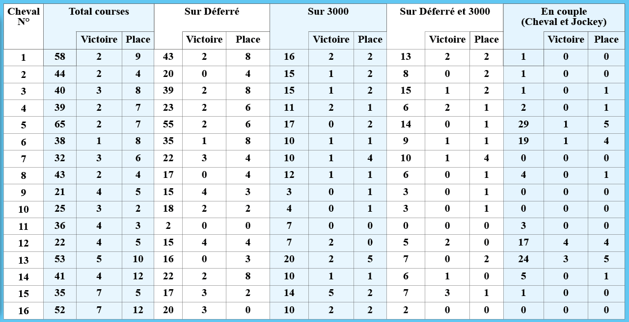 Statistiques détaillées des performances –  Prix de la Societe des Courses de Nantes (7ème course à Nantes), réalisées par letemps.news :