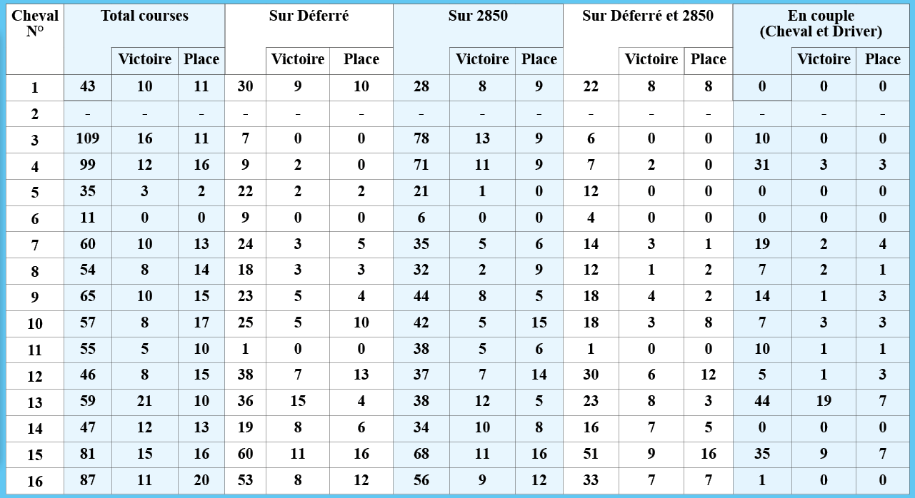 Statistiques détaillées des performances – Prix du Chesnay (1er course à Vincennes), réalisées par letemps.news :