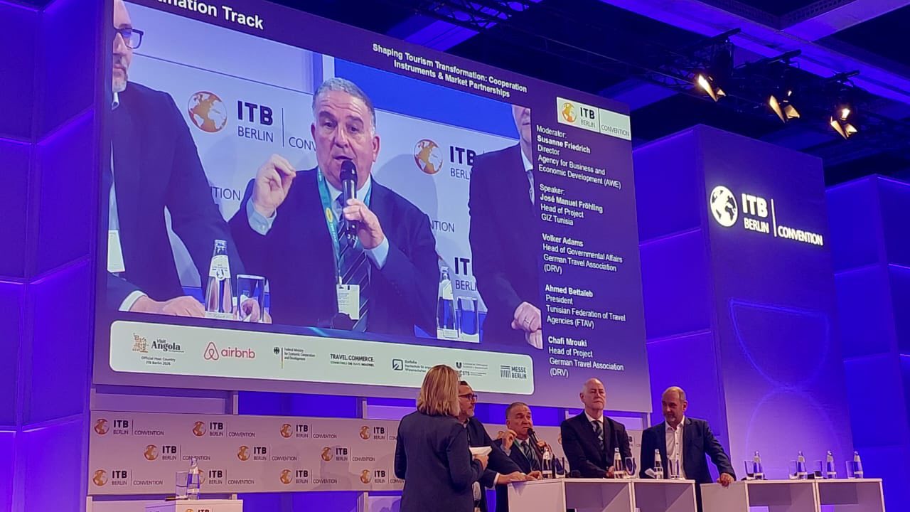 Dans un contexte international marqué par des tensions géopolitiques qui redistribuent les flux touristiques, la présence de la Tunisie au Messe Berlin illustre une volonté stratégique de s’inscrire durablement sur la scène internationale.. Près de 400 intervenants internationaux de haut niveau ont débattu, au sein de 17 sessions thématiques et sur quatre scènes, de la manière dont les modèles économiques durables peuvent booster le tourisme. La Fédération tunisienne des agences de voyages (FTAV) était au cœur des débats internationaux du tourisme à l’ITB Berlin 2026. Son Président Ahmed Bettaieb, est intervenu lors d’un panel consacré à la transformation du tourisme à travers les instruments de coopération et les partenariats de marché en présence de José Manuel Froehling, responsable de projet à la GIZ Tunisie, Volker Adams, responsable des affaires gouvernementales au sein de l’Association allemande des agences de voyages (DRV),Chafi Moruki, chef de projet à l’Association allemande des agences de voyages (DRV) Bureau Tunisie.