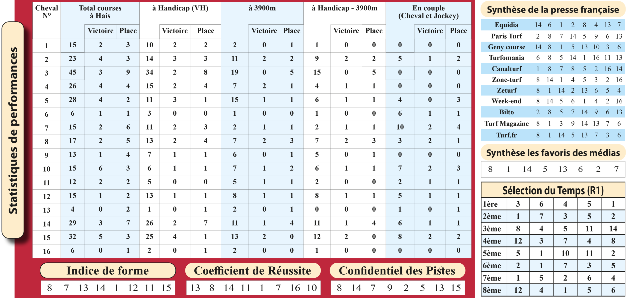 Dans cette rubrique, nous vous proposons un tour d’horizon des statistiques et analyses détaillées des performances du Prix Rose Or No, 3ème course de la réunion 1 à Auteuil. En s’appuyant sur les sélections et appréciations des sites spécialisés (Paris‑Turf, GenyCourse, Turfomania), cette synthèse met en avant les chevaux en forme du moment, leurs profils de course, l’évolution de leurs cotes et les conditions de course, afin de vous fournir une base solide pour vos paris PMU en Quinté, Quarté et Tiercé.