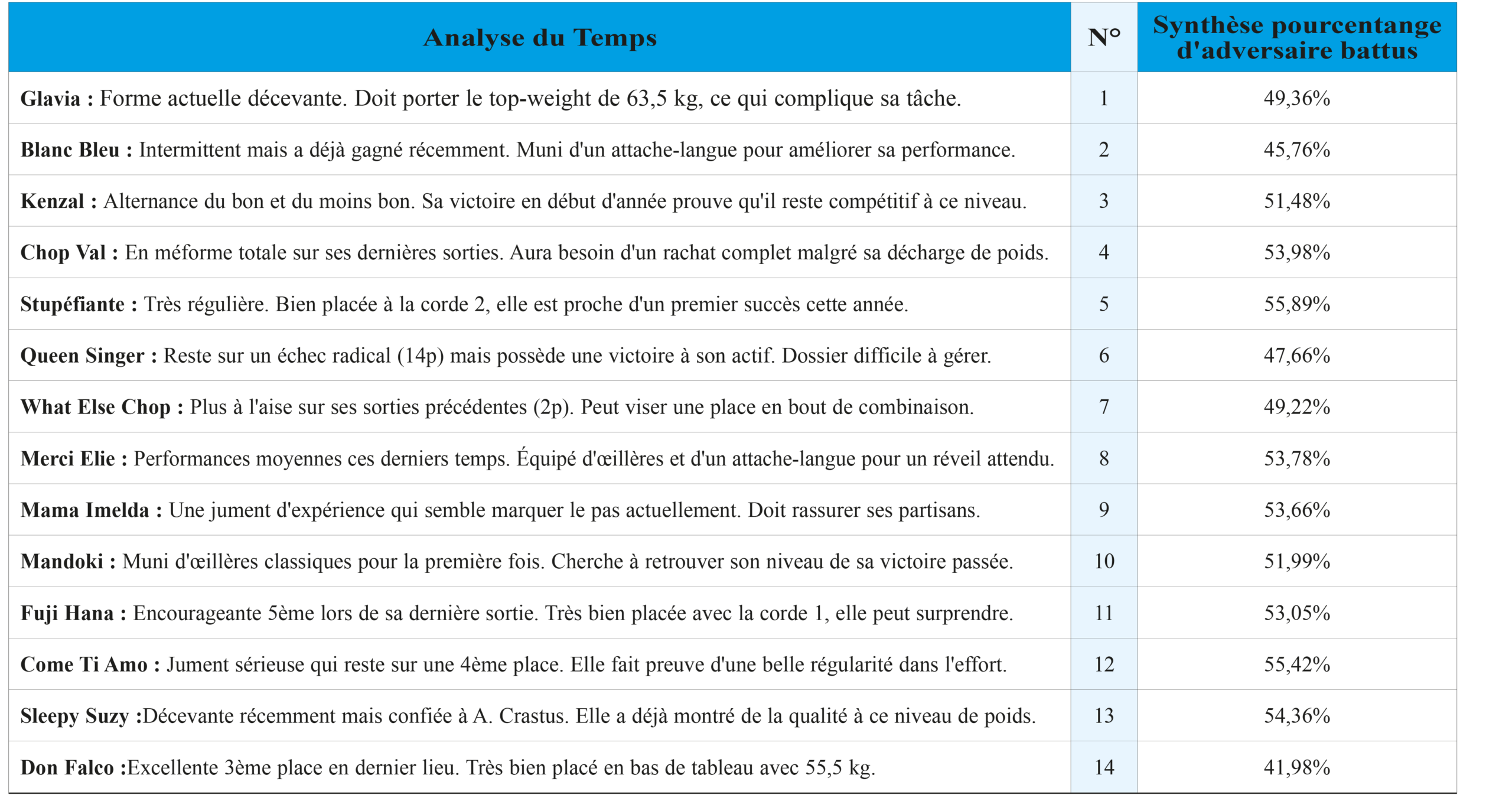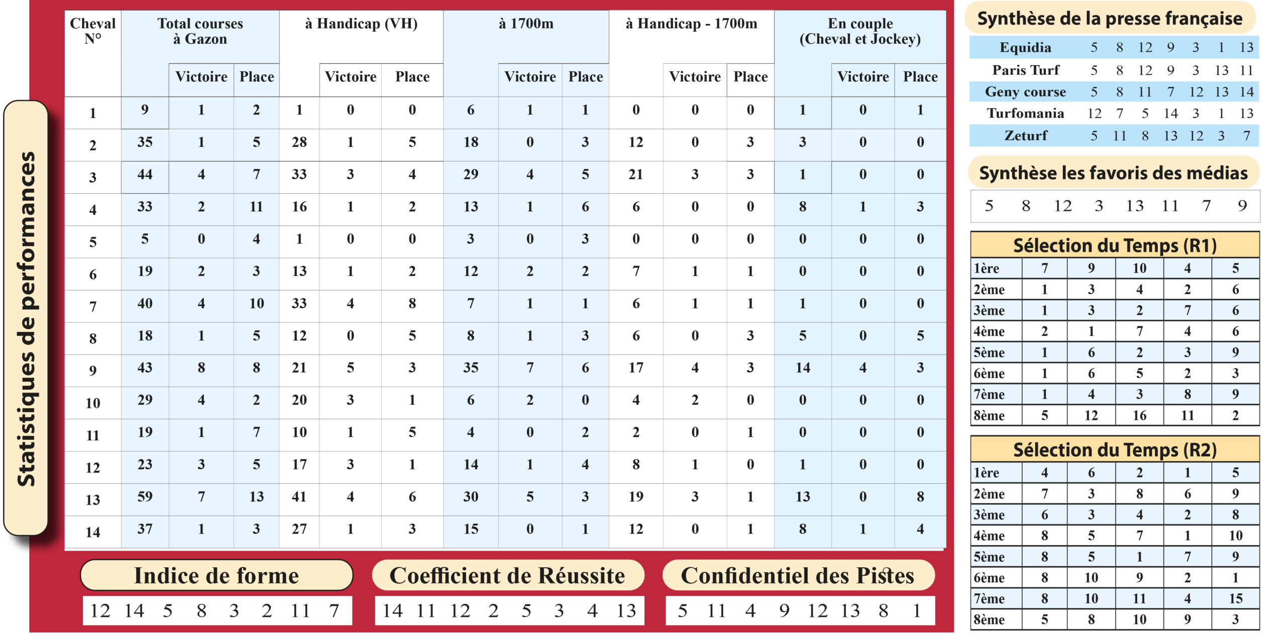 Statistiques détaillées des performances – Prix du Parc Borely (8ème course à Marseille Borely), réalisées par letemps.news :