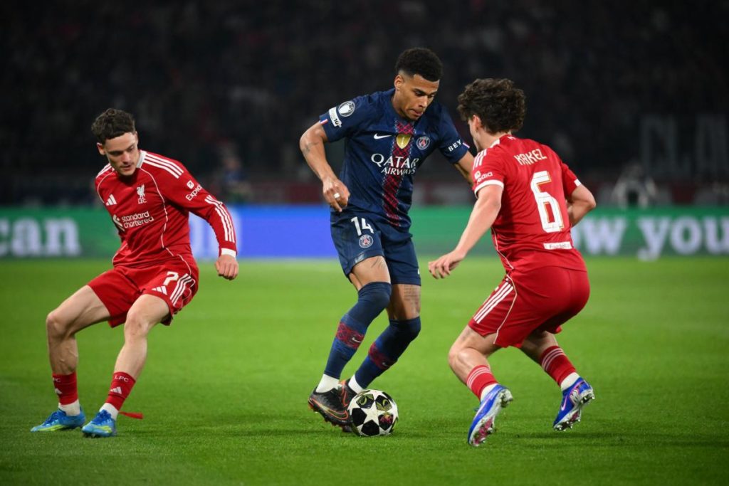 Le Paris Saint-Germain s’est imposé face à Liverpool (2-0) et a fait un grand pas vers le dernier carré de la compétition grâce à une ​prestation pleine de maîtrise. Désiré Doué a ouvert le score d’un magnifique but dès la 11 e minute de jeu, bien qu’avec un peu de réussite, sur la première occasion de son équipe. Khvicha Kvaratskhelia a ensuite creusé l’écart après l’heure de jeu pour concrétiser la domination parisienne et offrir une ​avance plus confortable aux champions d’Europe en titre. Face à un adversaire en mal de confiance, quatre jours après s’être vu infliger une claque par Manchester City en FA ‌Cup (4-0), le PSG a abordé cette rencontre avec les ingrédients des soirées européennes qui l’ont mené à son premier titre l’an passé. Largement dominateur, en totale maîtrise de la possession dès le coup d’envoi (70% du temps au final), Paris a ​ouvert le score dès sa première opportunité grâce à ‌Désiré Doué. Auteur d’un doublé face à la Colombie (3-1) lors de la trêve internationale, le jeune international français de 20 ans a inscrit son cinquième but de la saison en Ligue des champions en décochant une frappe soudaine à l’angle de la surface. Déviée par Ryan Gravenberch, sa tentative a lobé Giorgi Mamardashvili avec un peu de réussite (11 e ). Le gardien liverpuldien, remplaçant d’Alisson Becker, blessé, a toutefois sauvé la mise de son équipe ‌à plusieurs reprises devant les nombreuses occasions parisiennes. Il a repoussé une volée de Khvicha Kvaratskhelia d’une main ferme (32 e ) puis le ballon du doublé de Désiré Doué (37 e ) avant de capter une frappe trop écrasée d’Ousmane Dembélé (42 e ). Ce dernier, en manquant une occasion en or, ‌seul au point de penalty sur une passe en retrait de Nuno Mendes (53 e ), a fait craindre au PSG que son manque d’efficacité pourrait lui être préjudiciable dans six jours à Anfield. Douze minutes plus tard, Khvicha Kvaratskhelia a toutefois permis au club de ‌la capitale de prendre un peu d’air, confirmant ainsi qu’il était l’homme des grands soirs. Le meilleur buteur parisien de cette campagne de C1 ​a inscrit son huitième but en éliminant son compatriote géorgien Giorgi Mamardashvili à ‌la suite d’un service précis de Joao Neves. L’addition aurait pu être encore plus salée sans la décision de l’arbitre d’annuler, après le recours à l’assistance vidéo, le penalty ​qu’il avait initialement sifflé pour une faute d’Ibrahima Konaté sur Warren Zaïre-Emery. Ousmane Dembélé, en touchant le poteau en angle fermé (87 e ) et Nuno Mendes (89 e ), en s’emmêlant les pinceaux seul face au but adverse, ont aussi eu les occasions d’enfoncer le clou. De son côté, Liverpool devra montrer davantage dans son antre pour espérer renverser le tenant du titre. Mercredi, sans Mohamed Salah, sur le banc au coup d’envoi pour la première fois en Ligue des champions depuis octobre et pas entré en jeu, les Reds n’ont frappé que trois fois (aucun tir cadré). Il a fallu attendre 48 minutes pour que l’international français Hugo Ekitiké décoche le premier tir des Anglais, sans danger.
