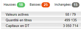 Sur 58 panneaux actifs, 18 étaient à la hausse et 25 à la baisse.