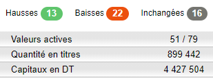 Sur 51 panneaux actifs, 13 étaient à la hausse et 22 à la baisse.