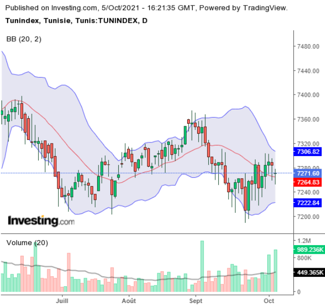 Après une clôture en baisse de 0.08% hier, le TUNINDEX évolue dans des marges étriquées dans un couloir à (7270-7300 points) ce mardi. La prudence est de mise après le récent et très discret resserrement monétaire.