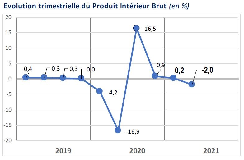 Sur le plan économique, et d’après un bilan publié par la même source intitulé «Croissance économique T2 2021 : Quelle lecture ? » , « au deuxième trimestre 2021, le Produit Intérieur Brut (PIB) a baissé de 2,0% en comparaison au trimestre précédent »