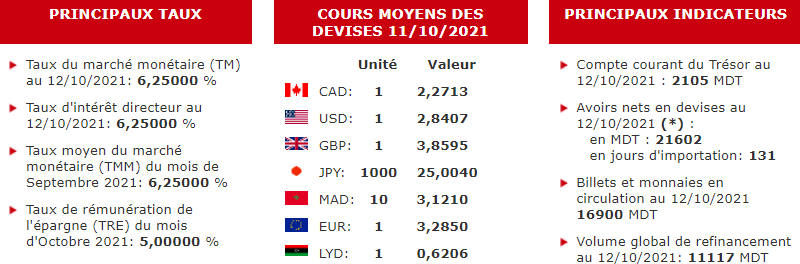 Le compte du Trésor s’est stabilisé à 2105 MDT.