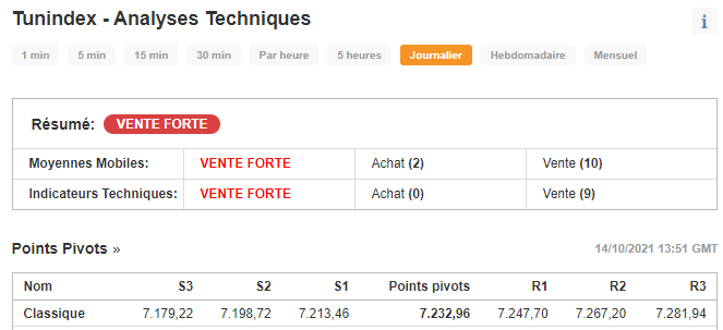 - Le marché boursier de la place de Tunis affirme sa tendance au repli. Au niveau des Indicateurs Techniques : Le marché évolue dans la zone VENTE FORTE.