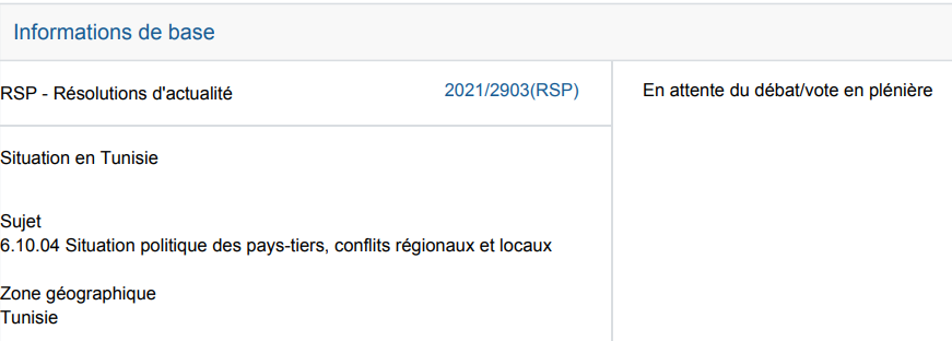 La situation politique en Tunisie à l’ordre du jour d’une séance plénière au Parlement européen