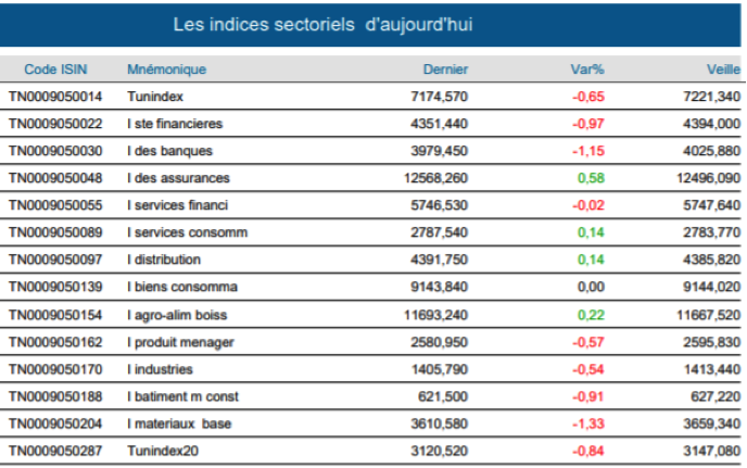 Le TUNINDEX clôture la séance de mardi, dans le rouge, dans la zone -VENTE FORTE.