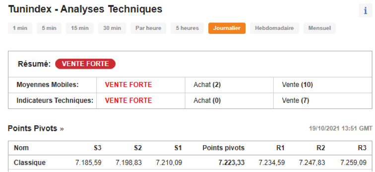Enfin, d’un point de vue graphique, on notera que les principaux supports S1, S2 et S3 ont été défoncés. Le prochain support potentiel pour le TUNINDEX se trouverait vers 7130/7150 points, tandis que le seuil de 7230 points constitue la première résistance importante visible sur les graphiques de court terme.