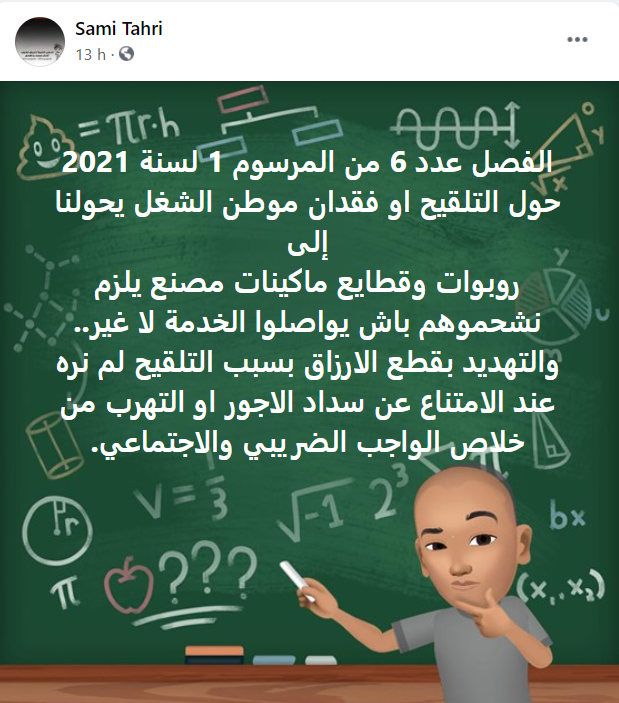 Il a souligné que le fait d’obliger les citoyens à choisir entre la perte de leurs emplois et la vaccination consiste une menace et fera en sorte que les Tunisiens « deviennent des robots ».