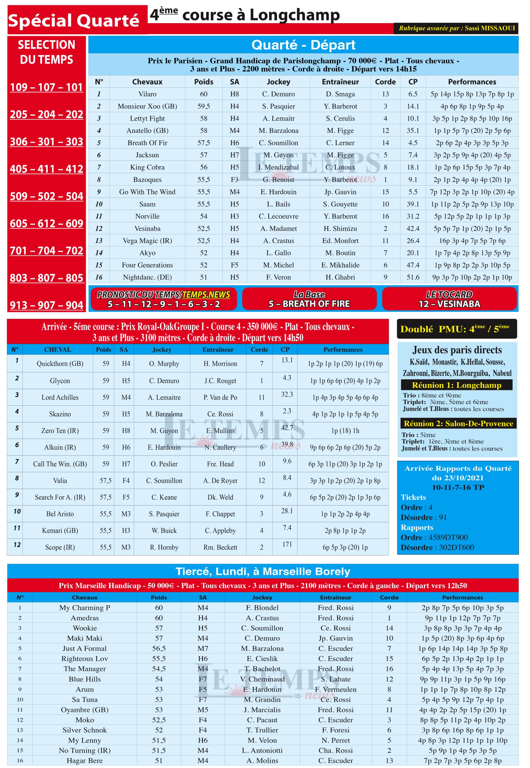 Notre spécial Quarté d’aujourd’hui, 4ème course à Longchamp, donne notre pronostic du Temps/ Temps.news avec le cheval n° 5 Breath Of Fire étant la base, tandis que le Tocard est le cheval n°12 Vesinaba.