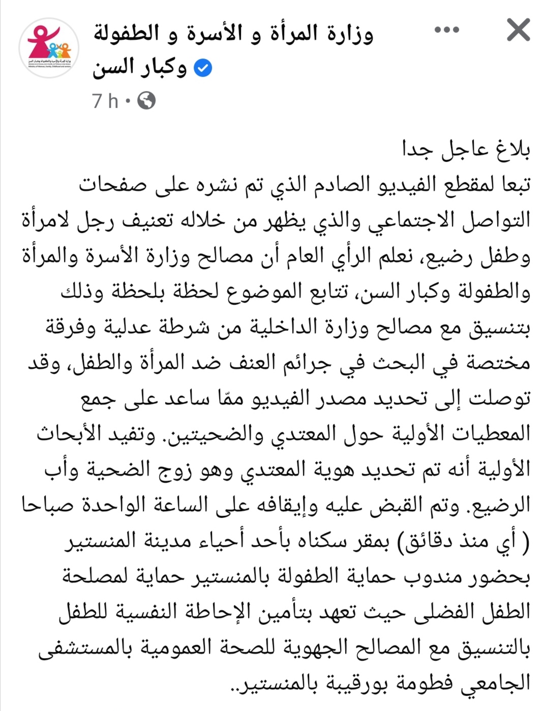Le ministère a également noté que le délégué de la protection de l’enfance s’est engagé à assurer le soutien psychologique en coordination avec les services régionaux de santé publique de l’hôpital Fattouma Bourguiba de Monastir.