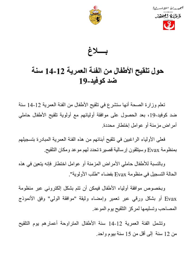 A noter que le ministère a, également, appelé les parents souhaitant vacciner leurs enfants à les enregistrer sur la plateforme Evax.