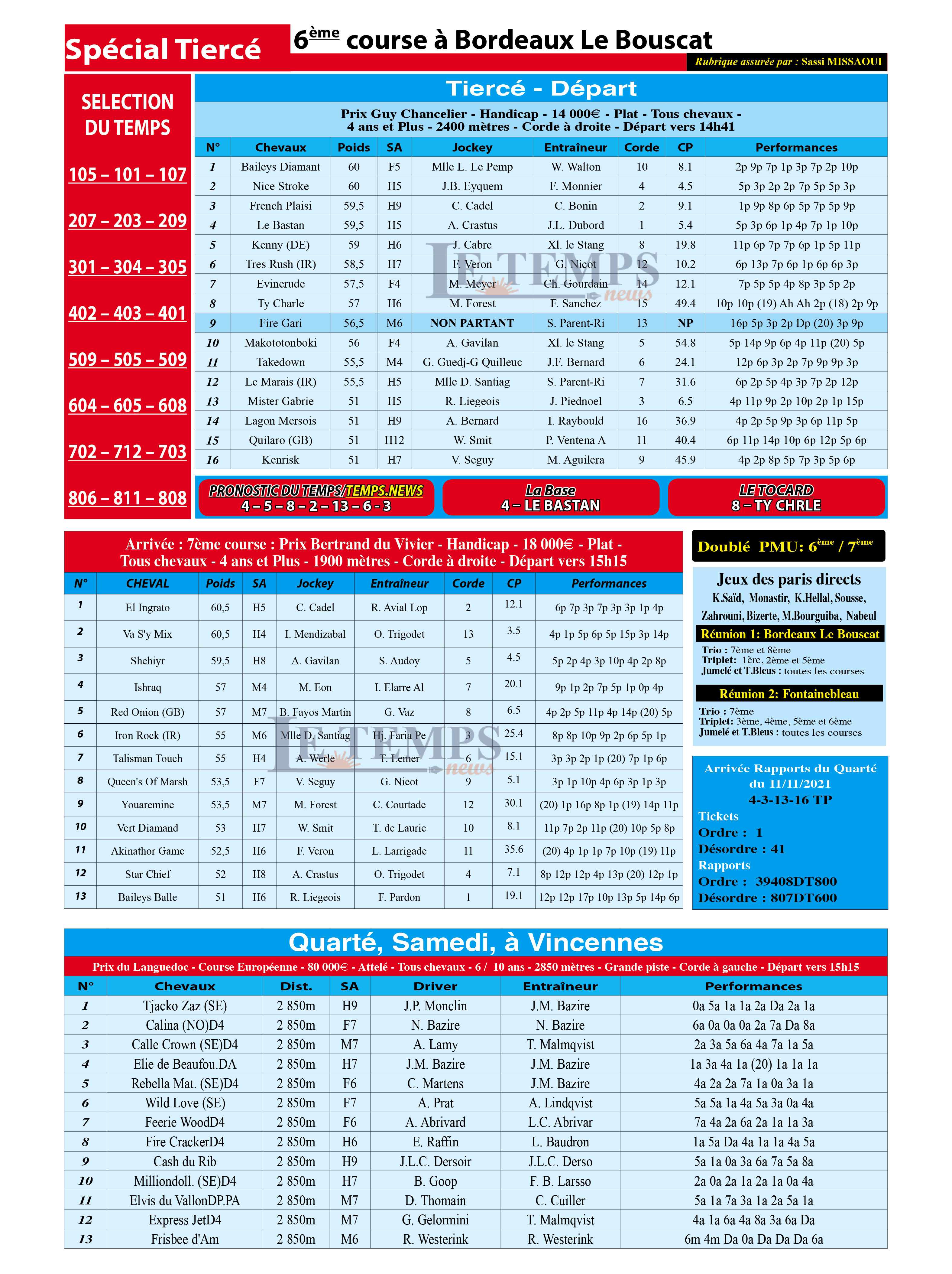 Partager Facebook Twitter LinkedIn Pinterest Email Notre spécial Tiercé d’aujourd’hui, 6ème course à Bordeaux Le Bouscat, donne notre pronostic du Temps/ Temps.news avec le cheval n° 4 Le Bastan étant la base, tandis que le Tocard est le cheval n°8 Ty Charle. ATS PMU Quarté Quinté Tiercé Turf