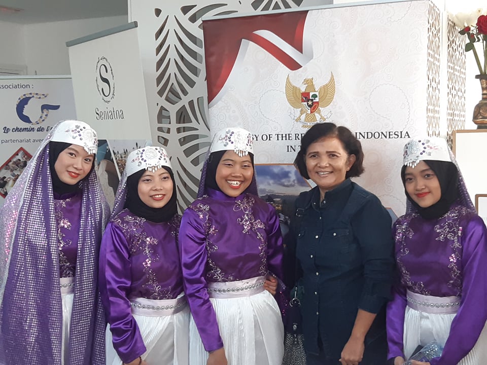 Mais bien avant, le public a assisté à des prestations présentées par un groupe de jeunes femmes qui ont chanté des sonorités joyeuses. Sourire aux lèvres, elles ont dansé aux rythmes de la musique indonésienne.