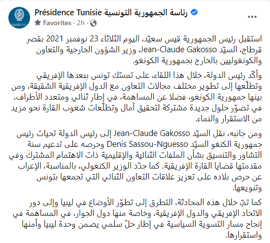 A noter que le Président Saïed a souligné l’attachement de la Tunisie à sa dimension africaine et son souci de promouvoir les domaines de coopération avec tous les pays d’Afrique, notamment la République du Congo.