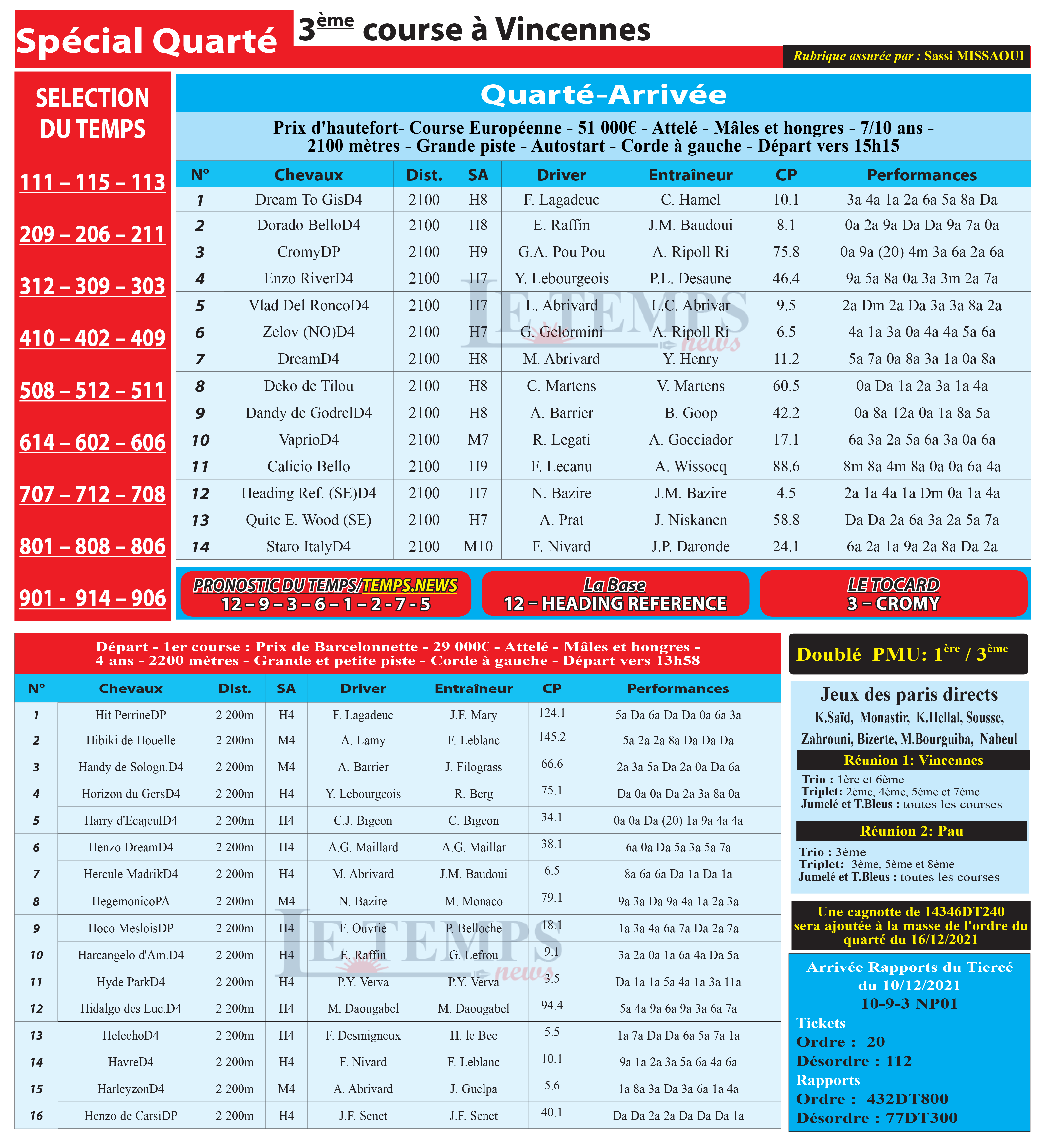 Partager Facebook Twitter LinkedIn Pinterest Email Notre spécial Quarté d’aujourd’hui, 3ème course à Vincennes, donne notre pronostic du Temps/ Temps News avec le cheval n°12 Heading Reference étant la base, tandis que le Tocard est le cheval n°3 Cromy. PMU Quarté Tiercé Turf
