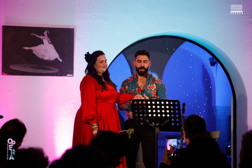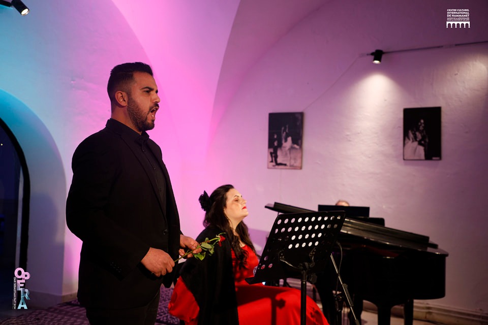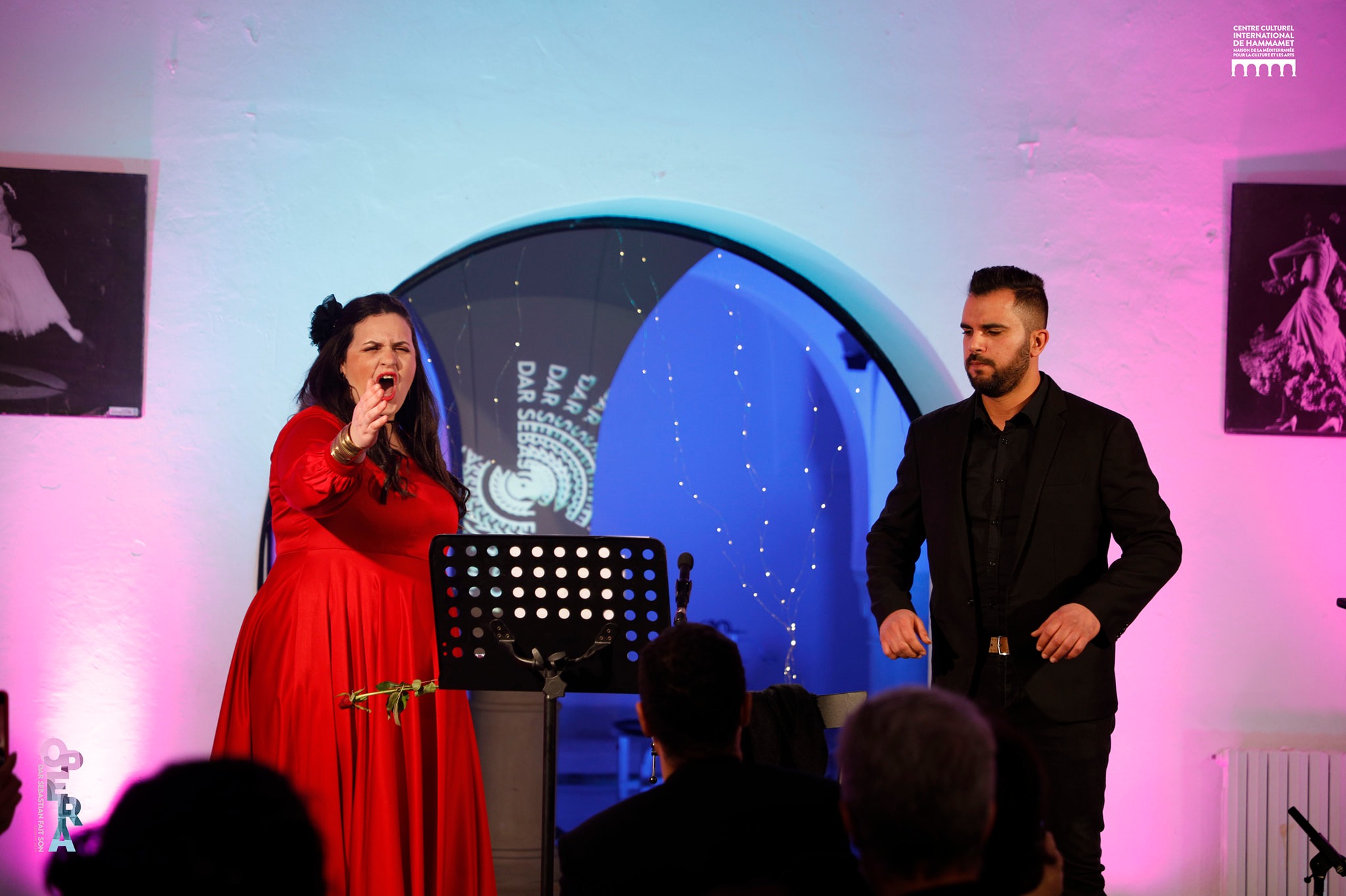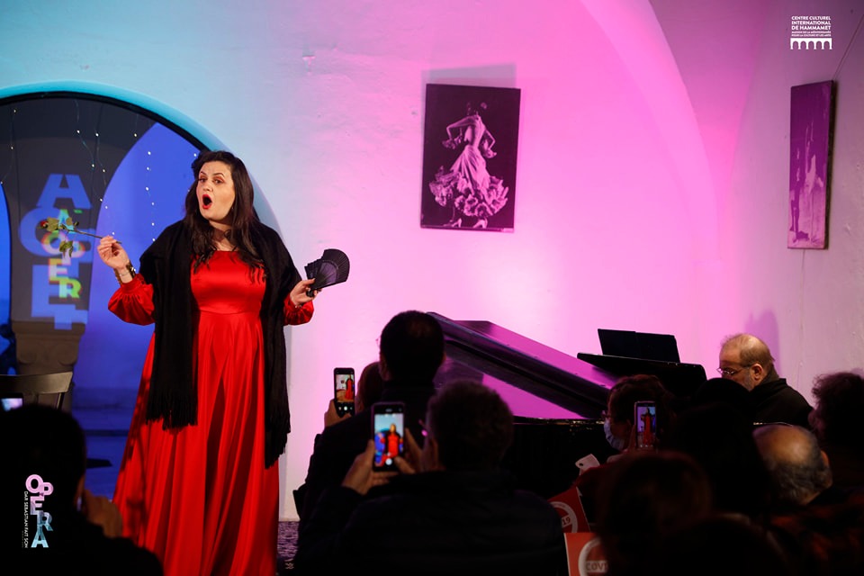 Drapée dans une robe rouge, la mezzo-soprano, Ichraf Sallem, a invité le public, jeudi 17 février 2002, dans le cadre du festival « Dar Sebastian fait son opéra » pour un long voyage musical à travers les envolées passionnantes de la musique lyrique. Un concert de gala dirigé par le pianiste Todor Petrov.