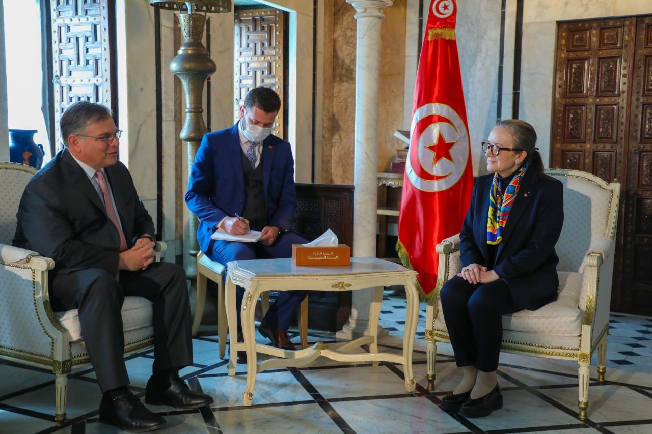 La Cheffe du gouvernement Najla Bouden a reçu, lundi, au palais du gouvernement à la Kasbah, l’ambassadeur des Etats-Unis d’Amérique à Tunis Donald Blome, à l’occasion de la fin de sa mission. Elle a salué, au cours de l’entretien, le soutien constant des Etats-Unis à la Tunisie, notamment dans les domaines de la défense nationale et des projets de développement, soulignant le souci de renforcer davantage les relations de coopération fructueuses dans les divers domaines.