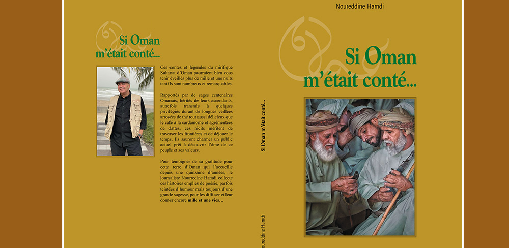 Un journaliste tunisien qui ‘’se convertit’’ en auteur pour immortaliser des contes et légendes Omanais et en langue française, voilà le challenge que vient de réussir Noureddine Hamdi qui fut l’une des plumes les plus prolifiques et recherchées de Tunis Hebdo, Espace Manager, Tunivisions et autres médias locaux et étrangers. Ce recueil de trente contes, répartis de façon ingénieuse en cinq ‘’gros’’ chapitres représentant les cinq grands gouvernorats du Sultanat, fait voyager le lecteur dans le temps et le fait rêver…