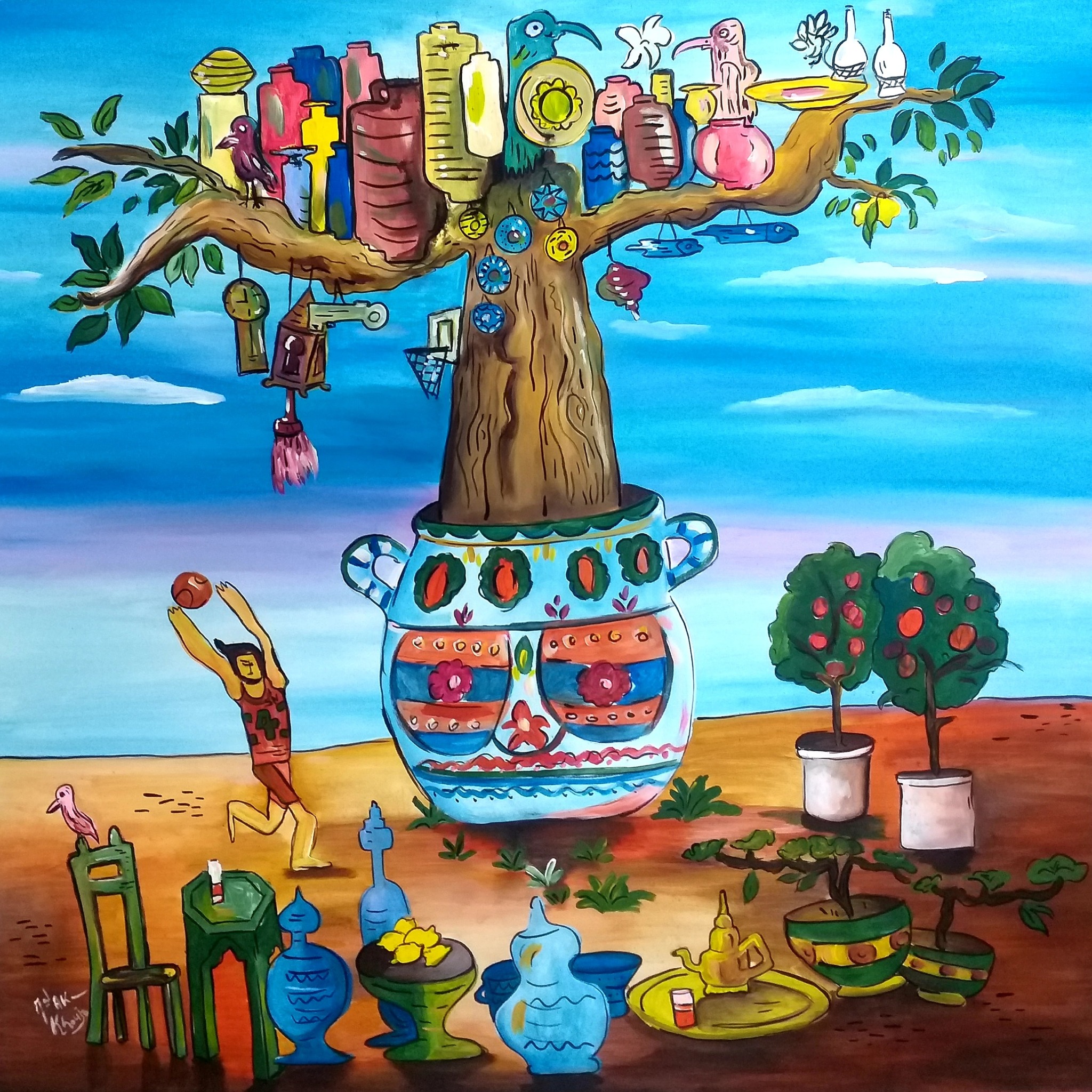 Dar Sebastian présente cet après-midi le vernissage de l’exposition « Fawatem » de Mohamed Akram Khouja. Ce projet artistique est le résultat de quelques observations et inspirations du peintre à Mahdia, ville natale. Ses œuvres expriment, au pluriel, les différentes péripéties de son vécu quotidien et celui de son père. Le centre de gravité de ses créations est indiscutablement sa ville de toujours, la pathétique Mahdia . Nous la retrouvons avec beaucoup de joie mêlée à de la nostalgie dans « Skifa El Kahla » , « Bab Zouila » et « Avenue Al Moez ».