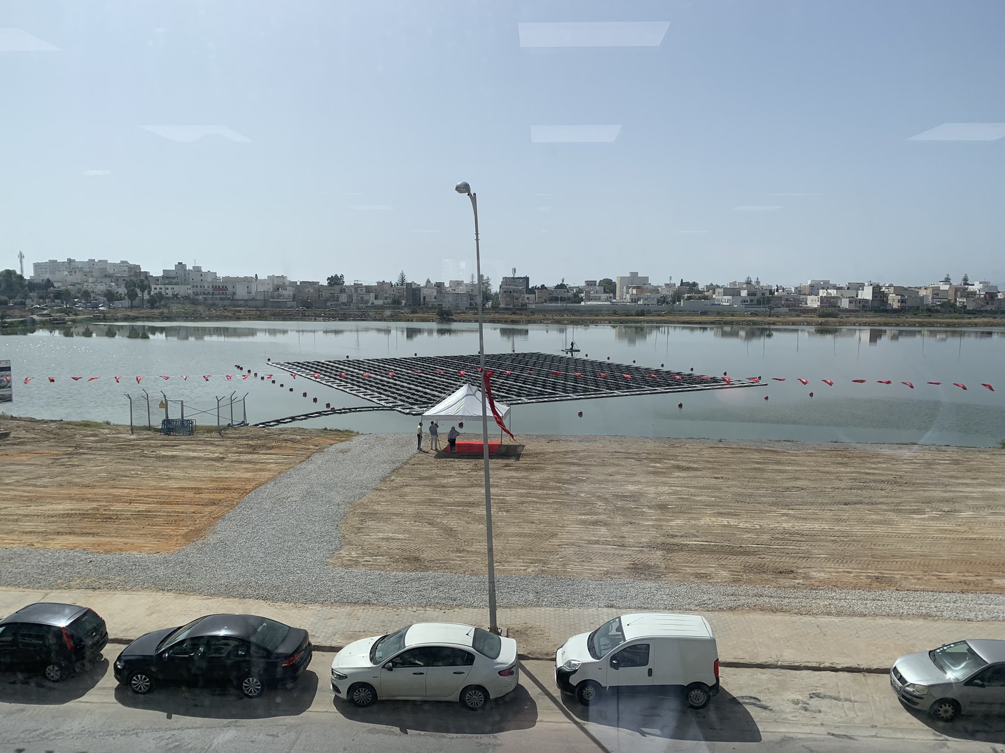 Située sur le lac de Tunis, la centrale solaire flottante conçue par QAIR est dotée d’une puissance nominale de 200 kWc, soit l’équivalent de la consommation de 390 personnes, permettant une réduction d’émissions de CO2 estimée à environ 120 tonnes par an. Ce projet pilote vise à démontrer la faisabilité technique de cette solution en Tunisie favorisant, outre une réduction des coûts énergétiques, une économie d’usage des sols ainsi qu’une préservation accrue des ressources en eau. Développée par l’entreprise française Qair avec l’accompagnement de Business France Tunisie, cette centrale solaire est financée par une subvention du « Fonds d’études et d’Aide au Secteur Privé » (FASEP) géré par la direction générale du Trésor français.