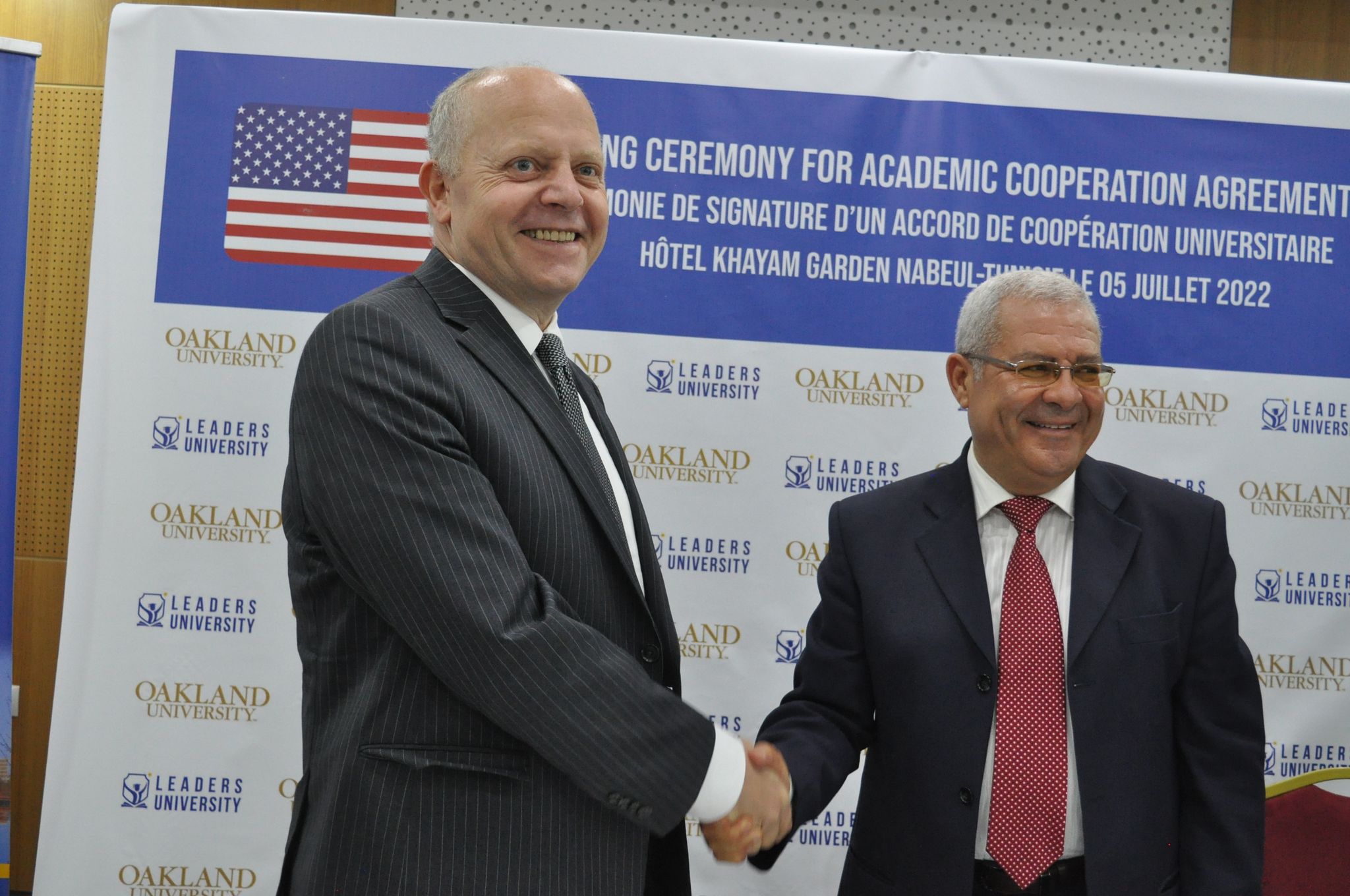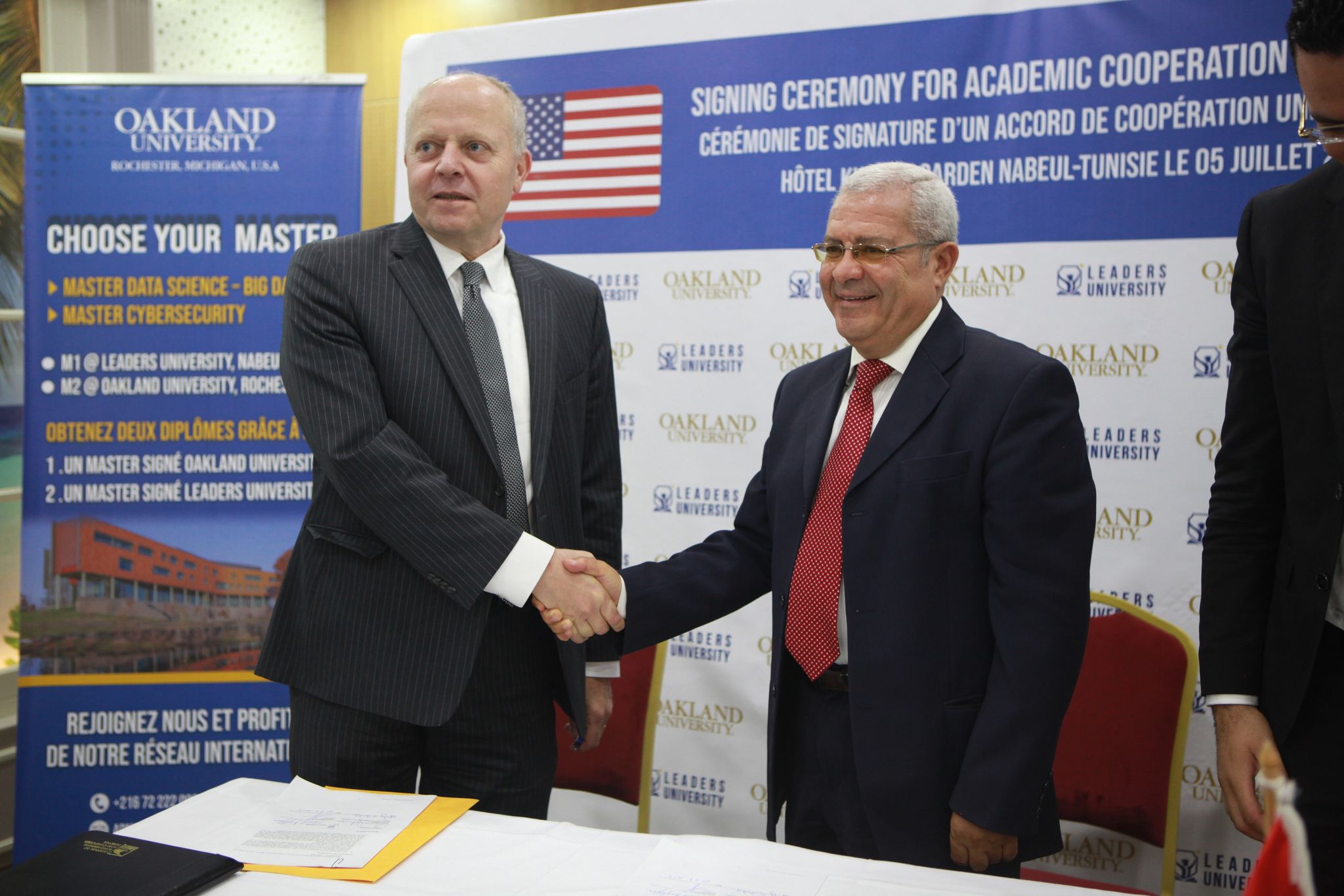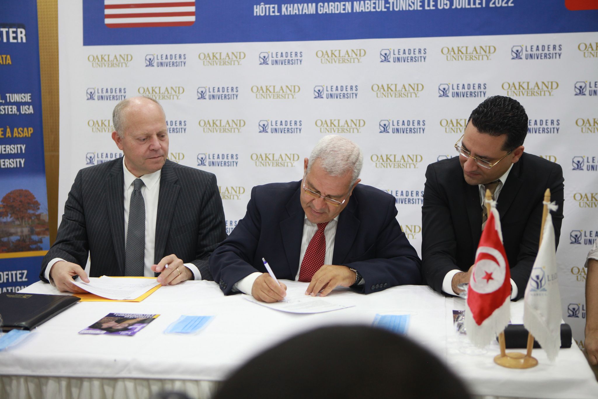 Selon les termes de cet accord, signé par Foued Daghfous, Directeur Général de Leaders University de Nabeul et Louay Chamra, Doyen de l’Université d’Oakland des sciences de l’informatique et de l’ingénierie, les deux parties s’engagent à promouvoir les échanges de chercheurs et d’étudiants en masters et la réalisation d’activités de recherche conjointes.