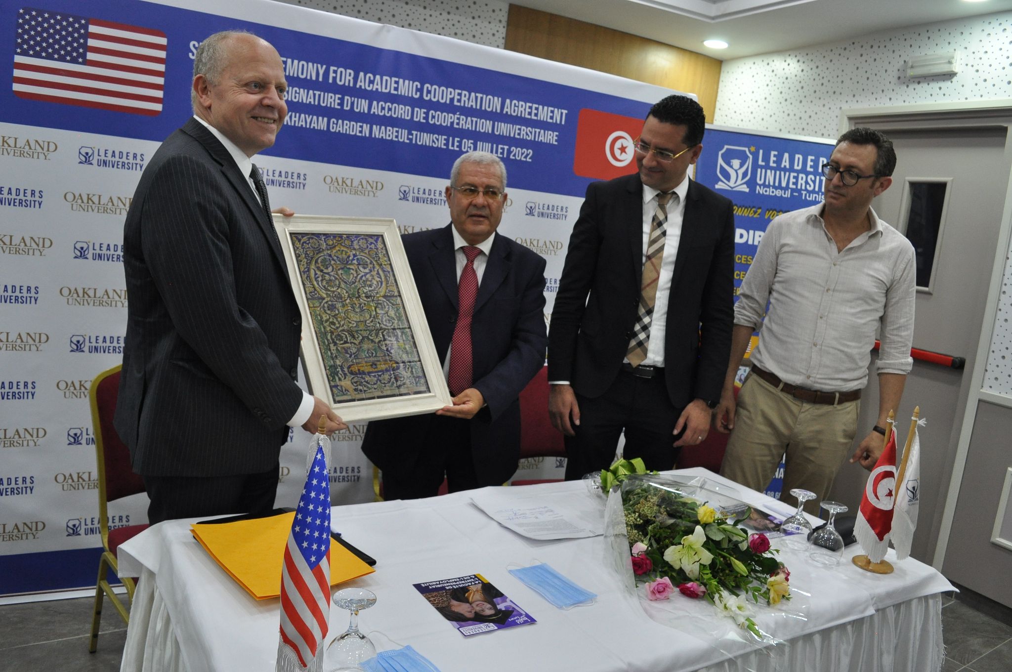 Et d’ajouter : « C’est grâce à l’Agreement for an American Semester Abroad Program (ASAP) et à l’Accord de Coopération Universitaire qui sera signé entre Oakland University (OU) et Leaders University de Nabeul (LUN), que les étudiants de LUN pourront s’inscrire directement en Master 2 et bénéficieront de plusieurs avantages dont notamment une première année de master au lieu de deux ans, une bourse de 1000 dollars par mois, une réduction de 80% pour les lauréats lors de l’inscription et 50 % pour les autres, une indemnité de stage de scolarité, un contrat de travail de 3 ans avec une entreprise américaine et un double diplôme, tunisien et américain qui constitue particulièrement aux diplômés, un atout de valeur leur permettant de s’ouvrir à plusieurs opportunités et à une carrière de haut niveau, y compris à l’échelle internationale.