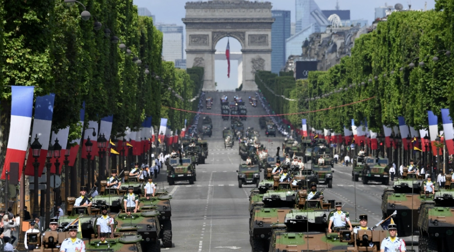 Quelque 125.000 forces de l’ordre ont été mobilisées dans toute la France pour veiller au bon déroulement de la fête nationale. Des « gilets jaunes » ont annoncé leur intention de manifester dans la capitale dans l’après-midi. Des feux d’artifice illuminent ensuite dans la soirée le ciel de France, frappée par une forte canicule, avec une large partie du territoire menacée par des incendies.