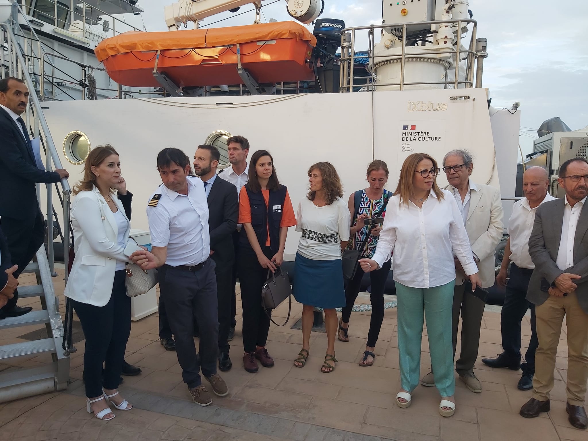 Les membres de l’équipe, qui avaient accosté hier au port de la marina à bord du navire français de recherche sous-marine « Alfred Merlin », ont été salués au cours d’une cérémonie tenue sous l’égide de Hayet Ketat Guermazi, ministre des Affaires culturelles et sa collègue de l’Environnement, Leila Chikhaoui, en présence d’une importante délégation de l’Unesco, ainsi qu’un certain nombre d’ambassadeurs et de diplomates, dont les pays font partie du projet.