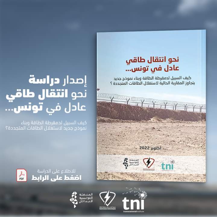 En marge de la journée internationale du Climat, une conférence virtuelle ouverte a été organisée ce jeudi 8 décembre 2022 pour présenter l’étude « Vers une transition énergétique juste en Tunisie » élaborée par la Plateforme Tunisienne des Alternatives et le Groupe de Travail pour la Démocratie Énergétique en coopération avec le Transnational institut. « Comment démocratiser l’énergie et construire un nouveau modèle d’exploitation des énergies renouvelables ? », ce document comprend un ensemble d’analyses, d’arguments et de statistiques pour répondre à cette question.