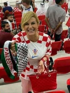 Porté par les fans de football uruguayens, algériens, tunisiens, marocains, brésiliens, saoudiens, qataris et jordaniens ; tatoué sur le corps d’un supporter argentin ; levé par la présidente de la Croitie et par des joueurs de l’équipe nationale marocaine, des joueurs de l’équipe nationale tunisienne ; accompagné parfois par le keffieh, le drapeau de la Palestine était fortement présent durant le mondial de Qatar dans les stades et dans les rues.