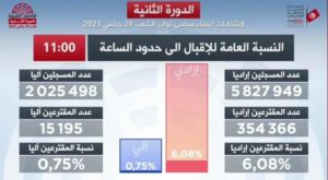 Lors du deuxième point de presse organisé par l’ISIE, Farouk Bouasker a indiqué que le nombre des électeurs ayant participé au deuxième tour des élections législatives tenues ce dimanche, le 29 janvier courant, a atteint 369 561 ( 4,71% du total des 7 853 447 électeurs inscrits ) jusqu’à 11h du matin.