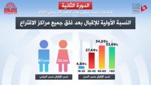 D’après les informations présentées par l’Instance Supérieure Indépendante pour les Élections lors du quatrième et dernier point de presse organisé ce dimanche, le 29 janvier, en marge de la tenue du deuxième tour des élections législatives, le taux de participation des électeurs âgés entre 18 et 25 ans est de 4,84%.