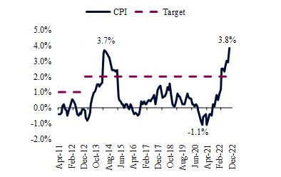 L’inflation des prix à la consommation au Japon a atteint des sommets inégalés depuis plusieurs décennies à la fin de l’année dernière, dépassant l’objectif de la BoJ pendant huit mois consécutifs. En réponse, la BoJ a commencé à s’éloigner prudemment mais historiquement de la politique monétaire radicale et ultra-allégée. Fin décembre 2022, lors de la réunion de politique monétaire de la BoJ, les responsables ont décidé de modifier le plafond des taux à long terme pour la toute première fois, le faire passer de 25 points de base (pb) à 50 pb. Cette décision a surpris les acteurs du marché, car le gouverneur de la BoJ, Haruhiko Kuroda, avait récemment démenti l’idée de modifier ou d’assouplir le cadre de la politique monétaire. En outre, cette décision s’est intervenue juste avant un « changement de garde » attendu au sein de l’équipe dirigeante de la BoJ, le mandat du gouverneur et du conseil d’administration devant expirer cet été.