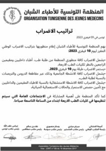 D’autre part, il a été indiqué que des AG seront organisées les facultés de médecine concernées à partir de 9h du matin et que les cours et les stages seront boycottés tout au long de la même journée.