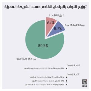 D’après l’étude présentée par Al Bawsala, la nouvelle composition du parlement comprend 24 députées femmes et 130 hommes. La même source indique, en outre, que le taux des députés.ées âgés.ées entre 23 et 25 ans est de 9.7%. En contrepartie, le pourcentage de ceux qui sont âgés de 36 à 59 ans est de 80.5%. Les députés.ées ayant plus de 60 ans représentent 9.7% de cette nouvelle composition parlementaire. Dans le même contexte, il a été noté que le plus jeune député est Ghassen Yamoun qui a 24 ans et a été élu pour représenter la circonscription « Djerba, Houmet Essouk ».